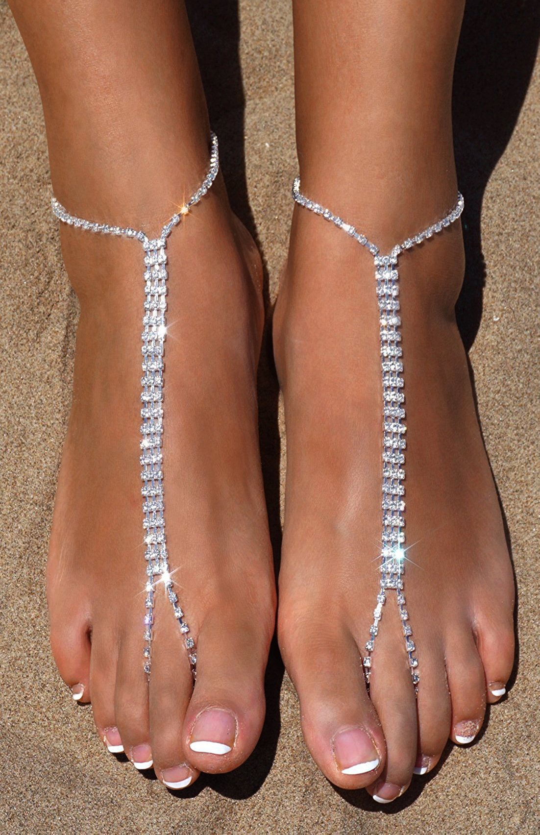 Features of the pair of foot Chain: crystal barefoot sandals with toe ring,comfortable to wear and keeps the shape;Adjustable ankle length with the extend chain; Light weight, can wear with or without shoes.