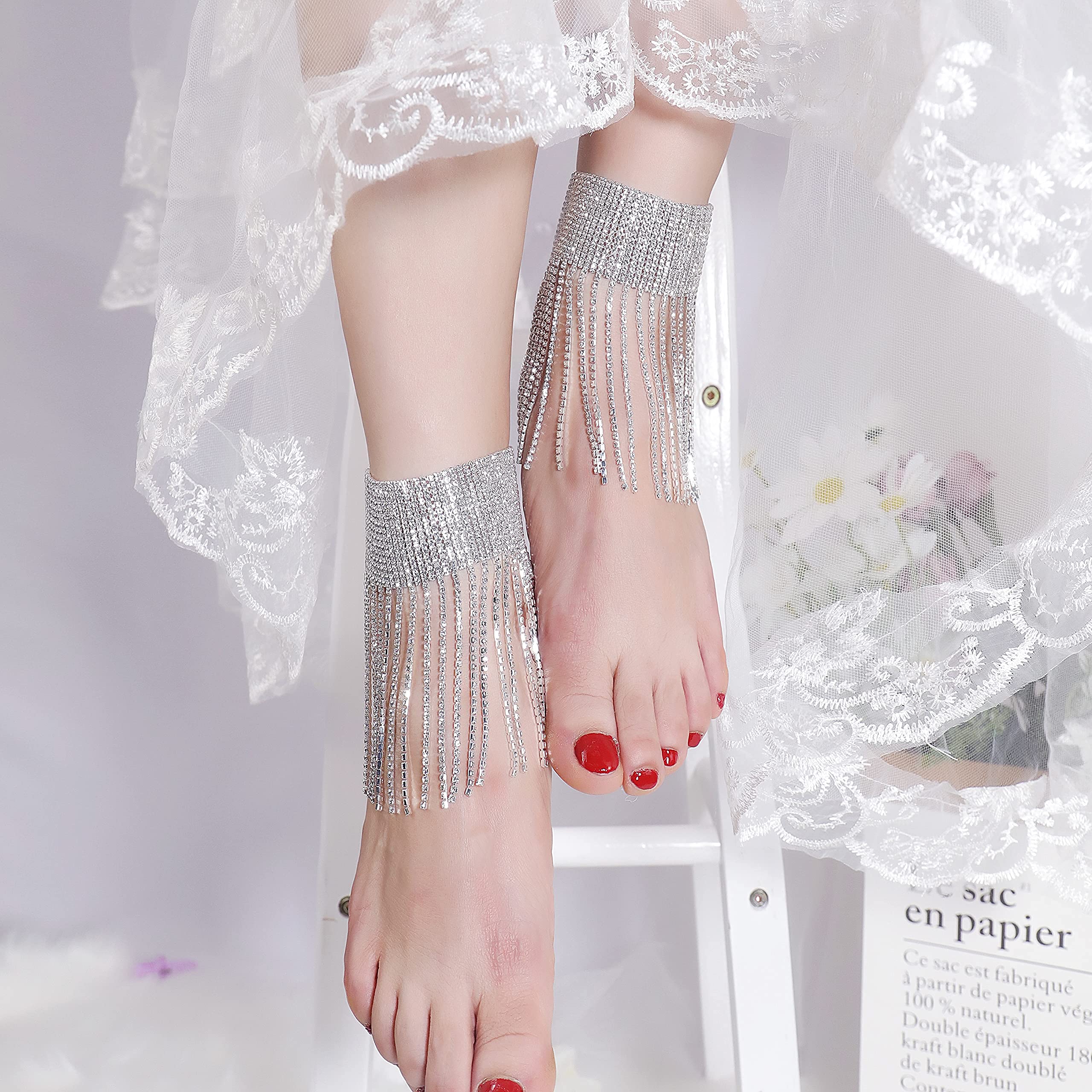 Fringe Anklet:high quality rhinestones and crystals, high transparency and multiple cut sides, make the rhinestones sparkle with brilliant light, especially under the sunshine