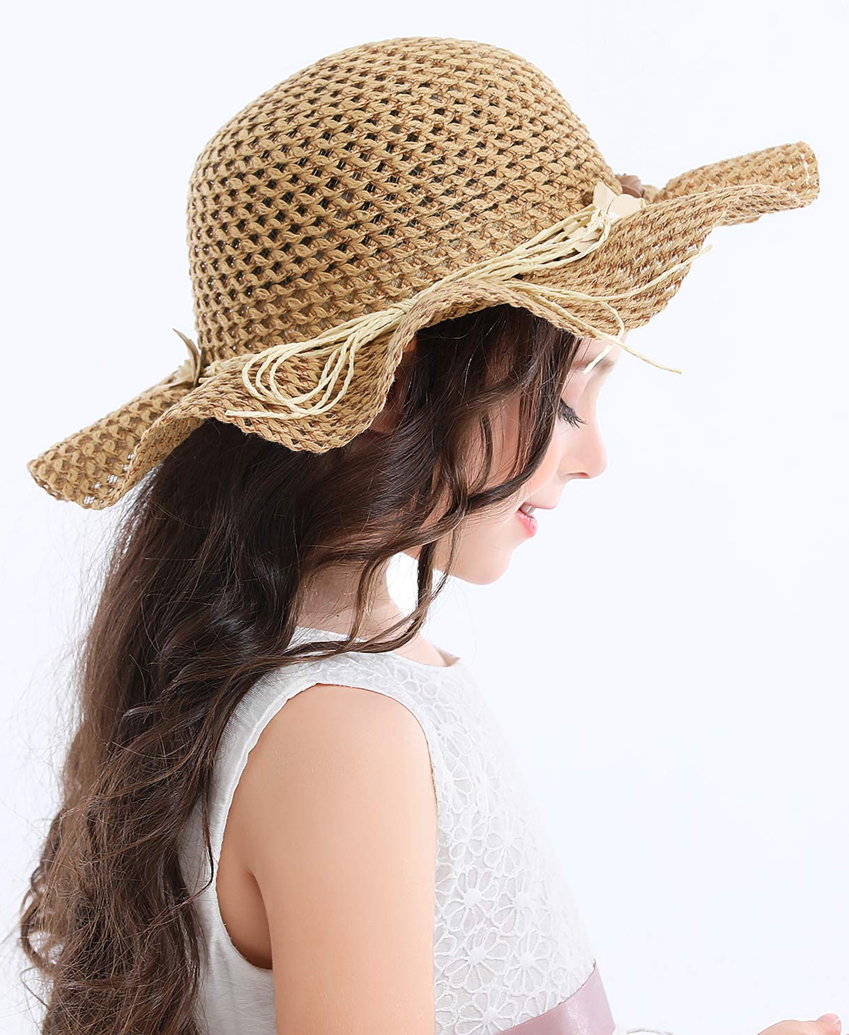 Bienvenu Girls Straw Hat Sun Hat Summer Beach Hat with Flowers—