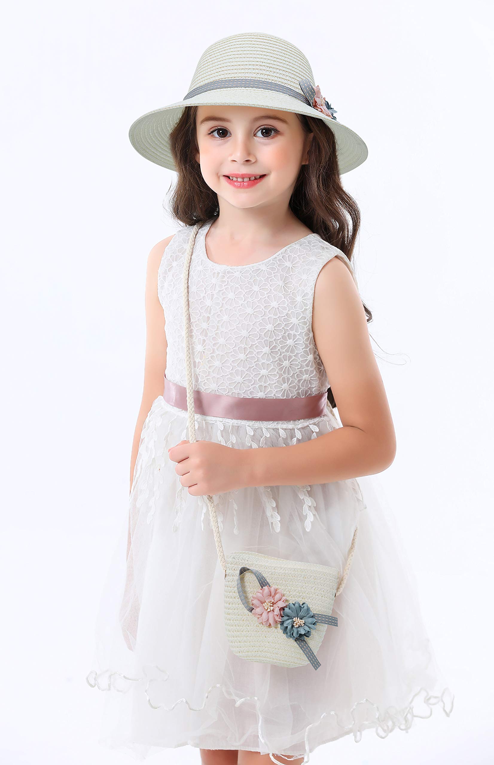 Cute Design - The color of girls hats is bright and the design is beautiful; The design is beautiful with the flower details make the straw hat more cute and gorgeous. Also matched straw-knitted pocket provide convenience, kids can carry their favorite things in this pocket. Attractive design with colorful flowers, perfectly decorate your kids, make your kids look more cute, easy to match any summer clothing.