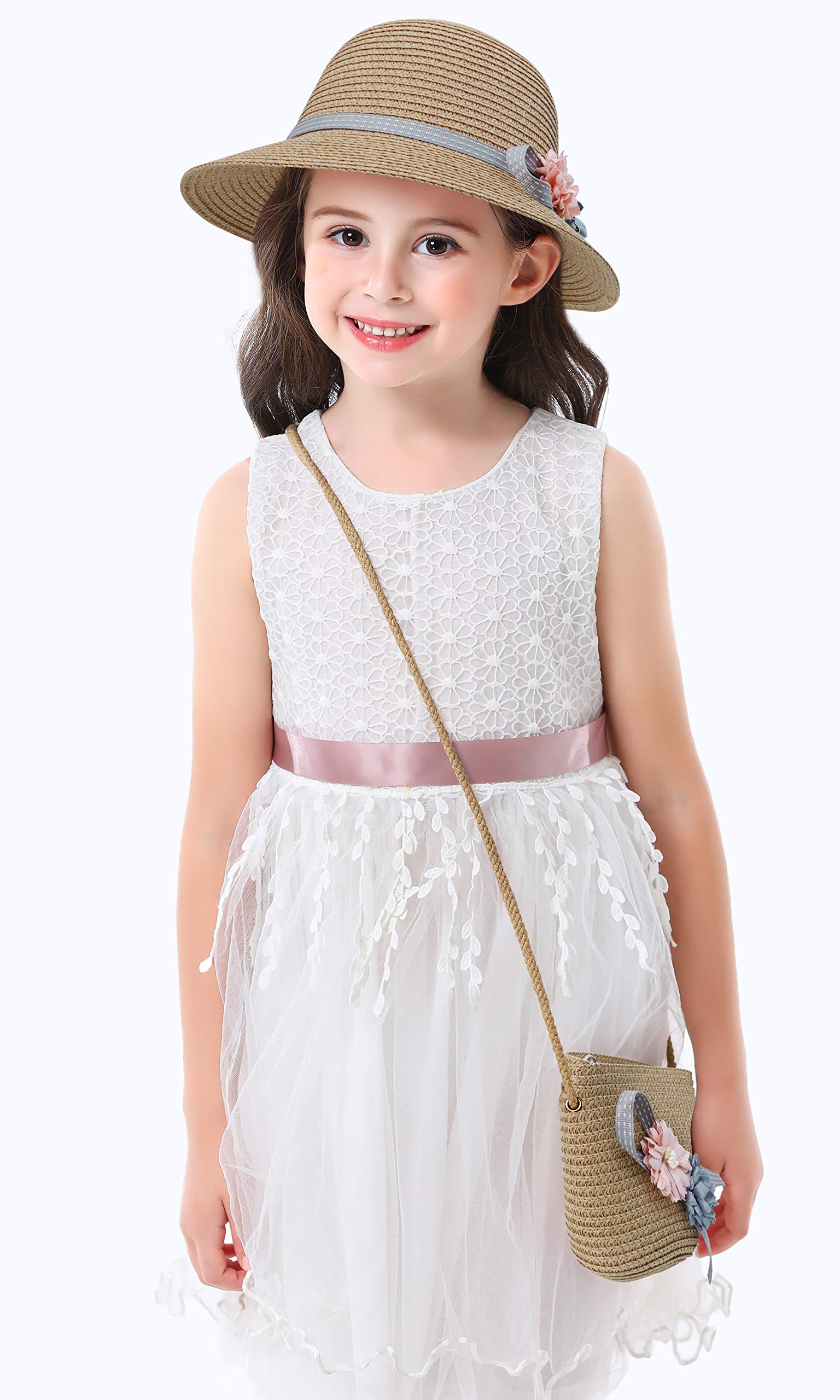 Bienvenu Girls Straw Hat with Pocket Girls Sun Hat Set Straw Suit